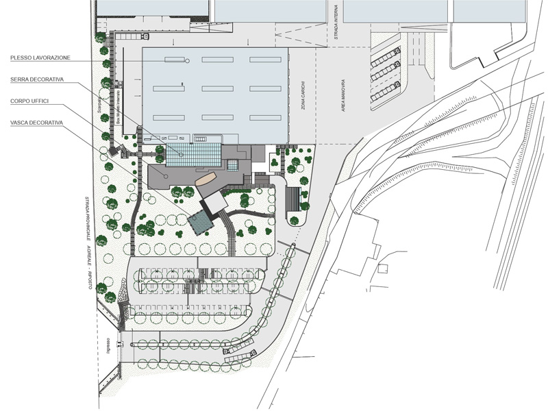 Building designed for offices and agricultural sector processings where the purely contemporary design of interiors and the architectonic image are integrated with high performances and energy sustainability standards.