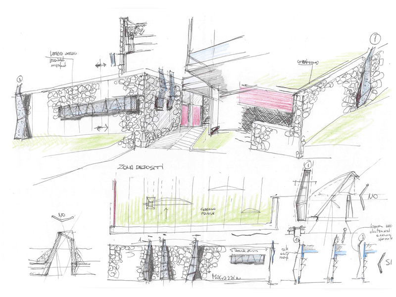 La morfologia viene dal contesto naturale antropizzato le cui caratteristiche costituiscono la matrice formale dell'opera. La pietra, dura e scabrosa, che si svolge sui volumi, uniforma il paesaggio della coltura in quota e ogni tanto fà emergere, inaspettata, una volumetria. Volumi puri che segnano con discrezione il paesaggio.